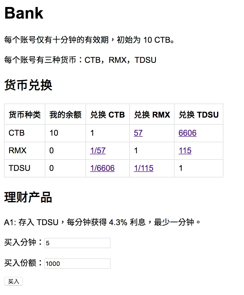進入之後是一個簡陋的頁面,定義了幾種貨幣和轉換關係。