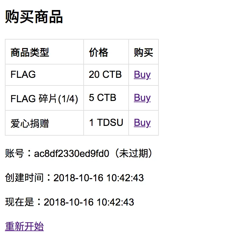 完整的買不起,買碎片是沒有任何效果的(我試過了)。到這裏就要想一下,難道是使用某種兌換和存入的方案可以使得玩家剛好可以賺得足夠的虛擬貨幣來買 Flag 麼?似乎不是,畢竟 PHP 是最好的語言。拋開弱類型,最基本的測試大概也就是「溢出」了。