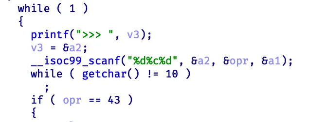 值得一提的是,因爲我當時不能在本地直接執行 calc 這個程序,於是我便照着 IDA 的結果實現了一個供測試用的版本,並且忘記了把原來程序中的