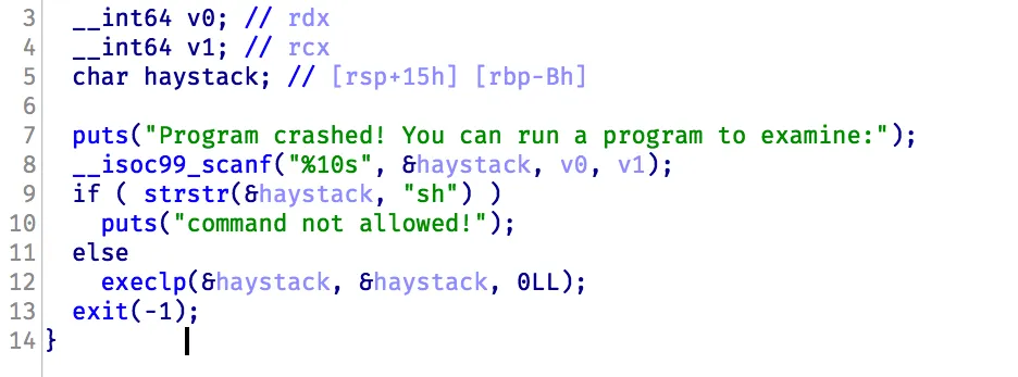flag好像哪裏不對勁。再去看下 IDA 中的結果,就會發現輸入的命令會截斷爲 10 字符。並且能存在空格,在 alarm 設置爲 5 秒的情況下,暴力測試還是比較難受的。