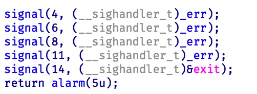 感覺能用上的也就是 SIGFPE 和 SIGSEGV。但之前看格式化字符串溢出的機會幾乎沒有,於是我只好把希望寄託於 SIGFPE 之上,最經典的方法是把一個數除以零,但是我們能看到代碼中已經加了(一部分)對於這個情況的檢查。