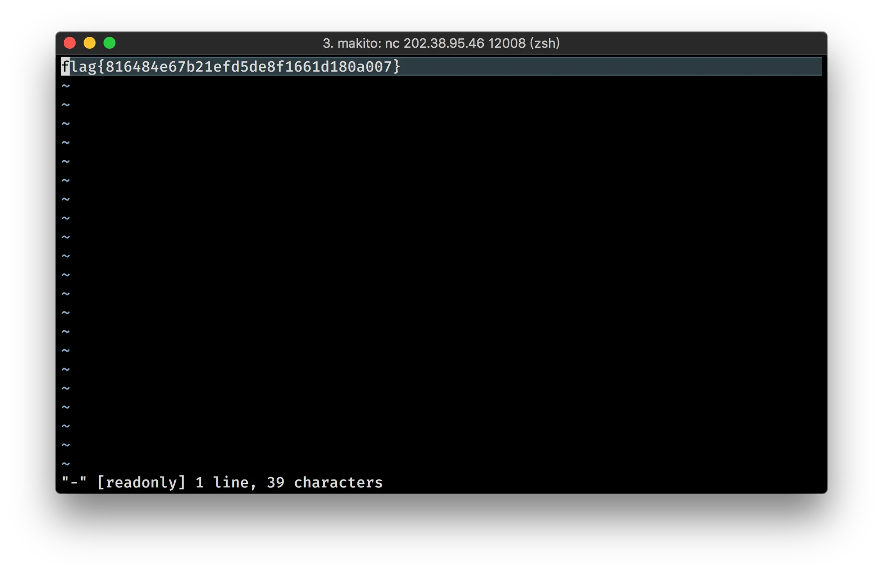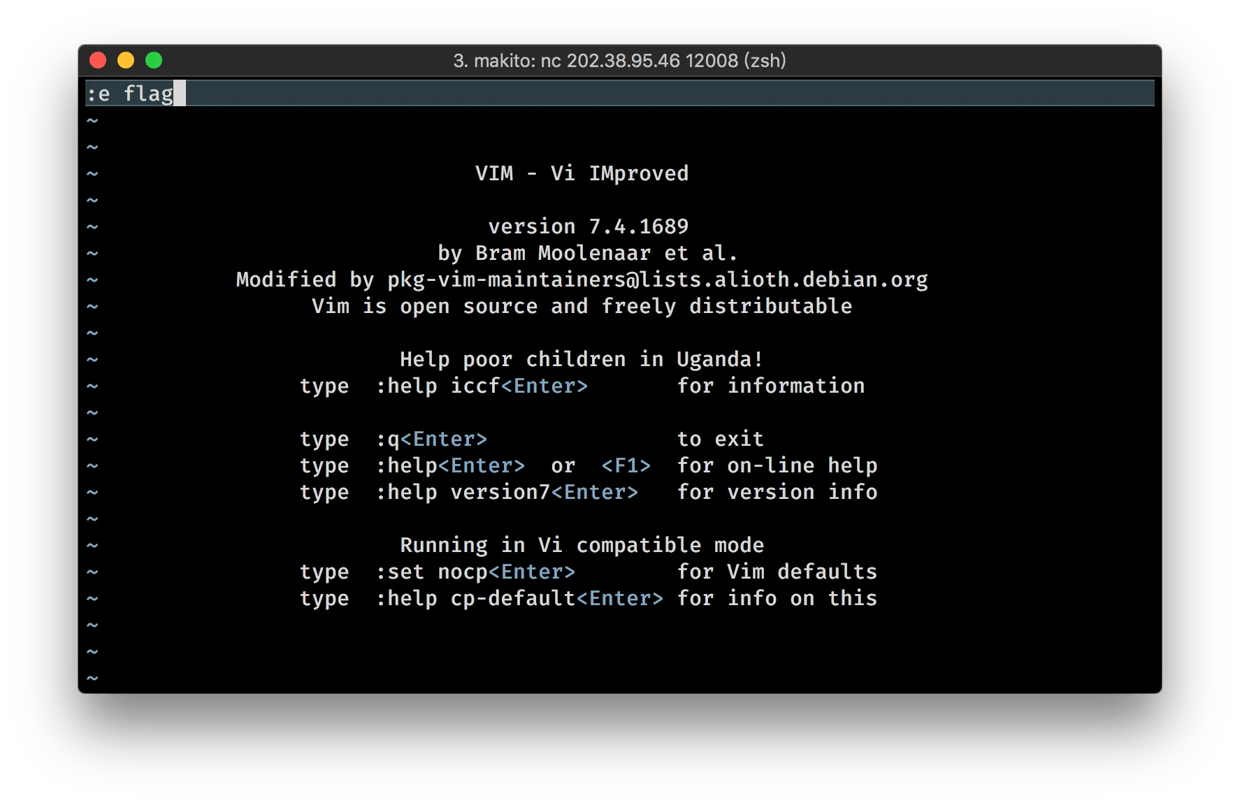 啊哈。VIM 真是太棒了,還幫我們解除掉了 alarm 的問題。那我們就直接用它打開 flag 好了。