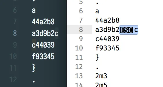 是一個上個世紀的大叔用 ed 編輯文件的故事,按照文件提供的內容重放(重新操作)一下就會把正確的 Flag 拼裝出來。不過文件中包含 ^C,直接用文件內容代替自己操作或是用了部分不顯示 0x1B 的編輯器都有可能把你帶到坑中。就像下圖一樣。