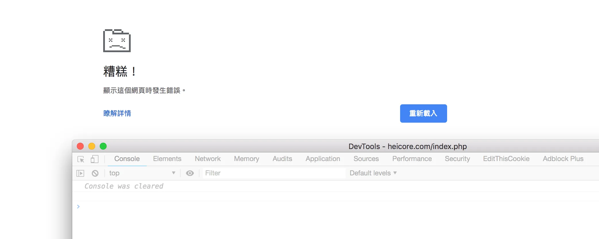 還有官網,厲害了。但當你準備打開熟悉的 DevTools 時,就會發現網頁瞧瞧地清除掉了你的 Console,甚至玩起了 404。