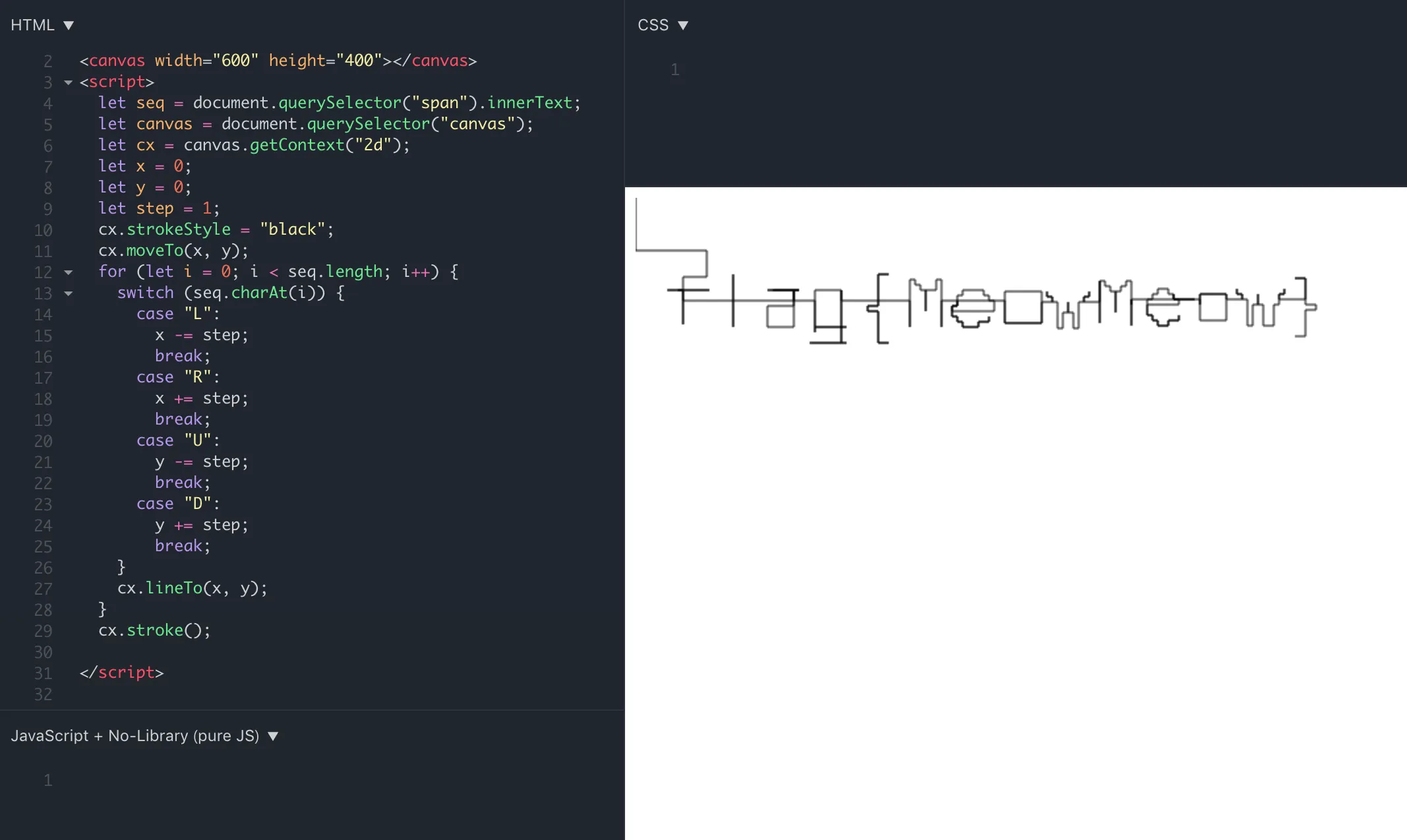 題目給出的文件打開後都是類似 RRRRRRRDDDDLLLLLLLLLLLLLLLLDDDDDDRRRRRRRR 的序列,只由 L、U、R 和 D 四個字母組成,總感覺是可以畫出來的方向。那就來畫畫看。